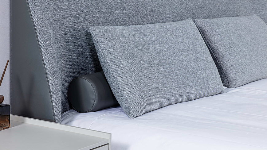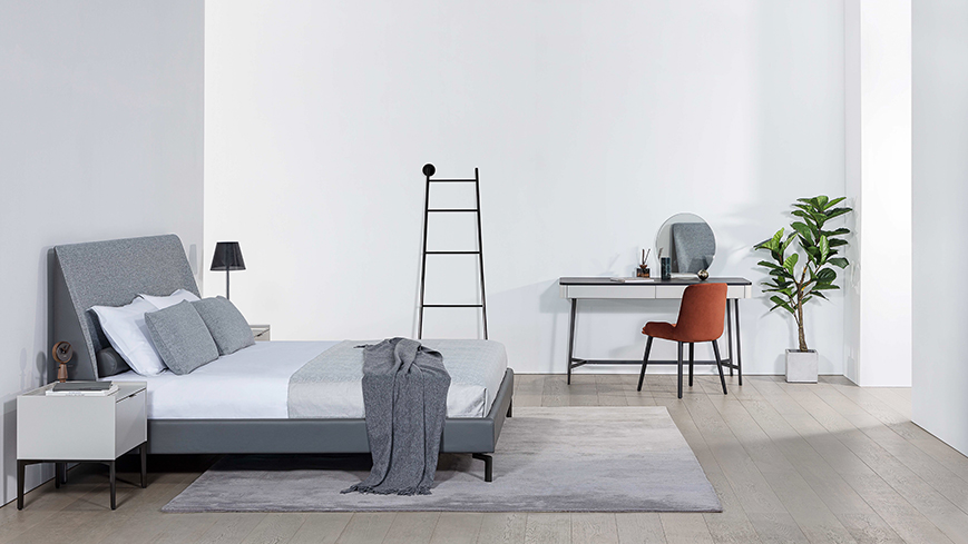 床头形状贴合人体背部曲线,给予身体有力的支撑与依靠。两侧侧耳线条柔美,自带包围感,加上挑空设计的金属腿,让卧室空间平添一份轻盈与灵动。