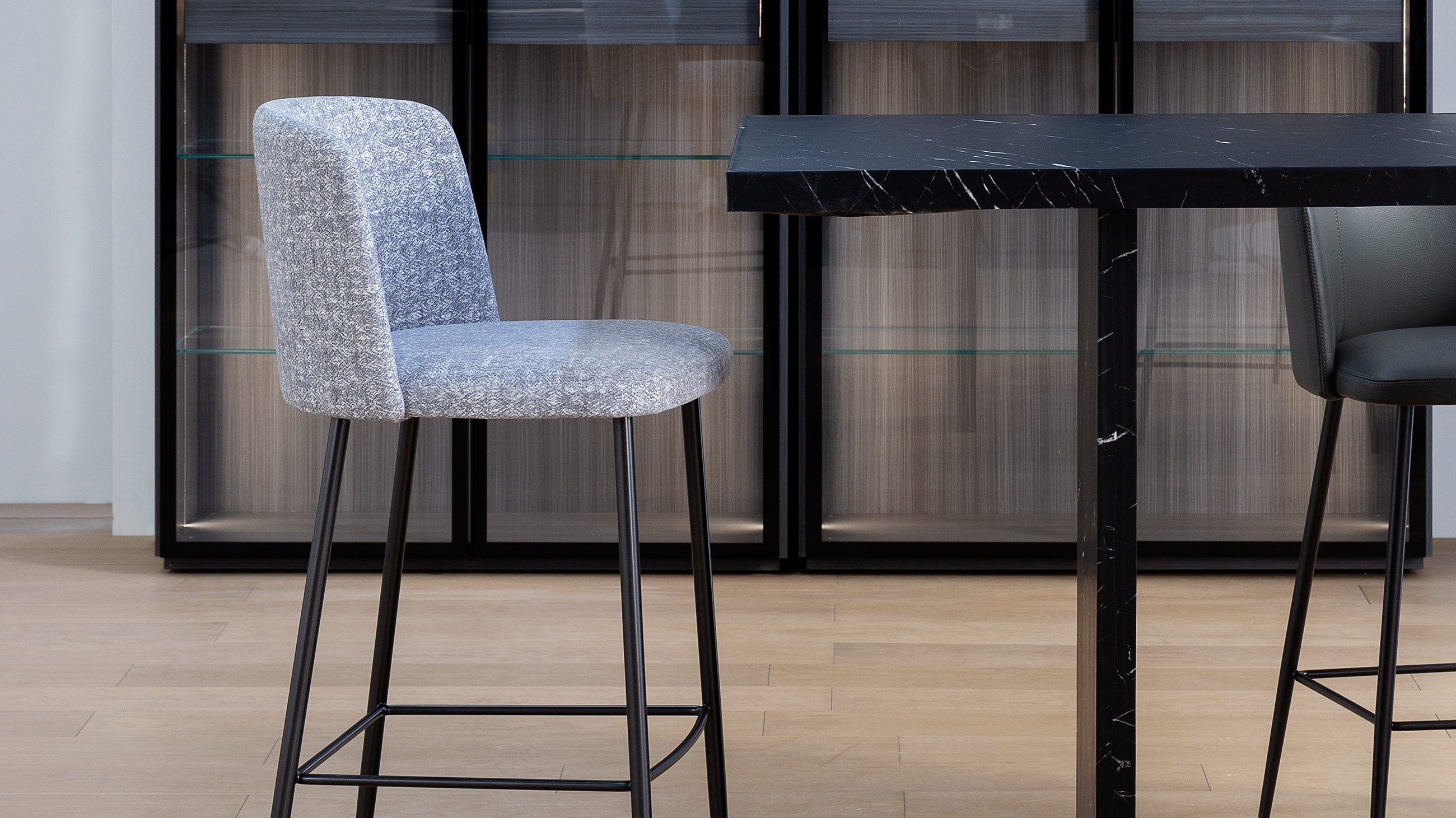 不同款式调配出不同感受,可轻轻摇曳扶手的餐椅,身姿高挑的吧椅,各自传递出生活的别样情趣。